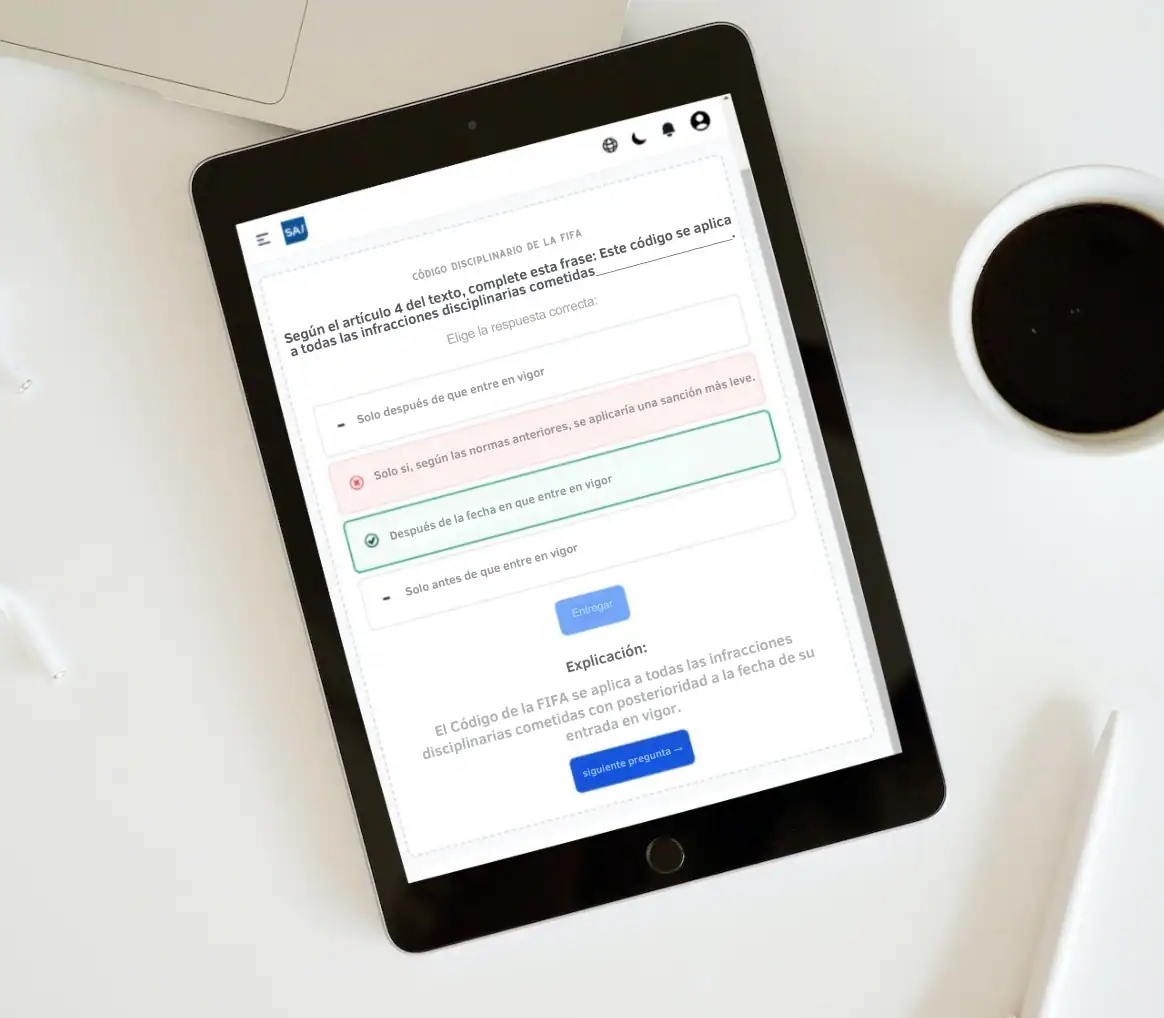 Con SportsAgent Institute, tendrás acceso a simulacros completos que reflejan lo que verás el día del examen. Nuestras preguntas se basan en exámenes anteriores, así como en la experiencia y creatividad de nuestros juristas especializados en derecho deportivo y normativa FIFA. No utilizamos ninguna inteligencia artificial para garantizarte una calidad de contenido impecable.